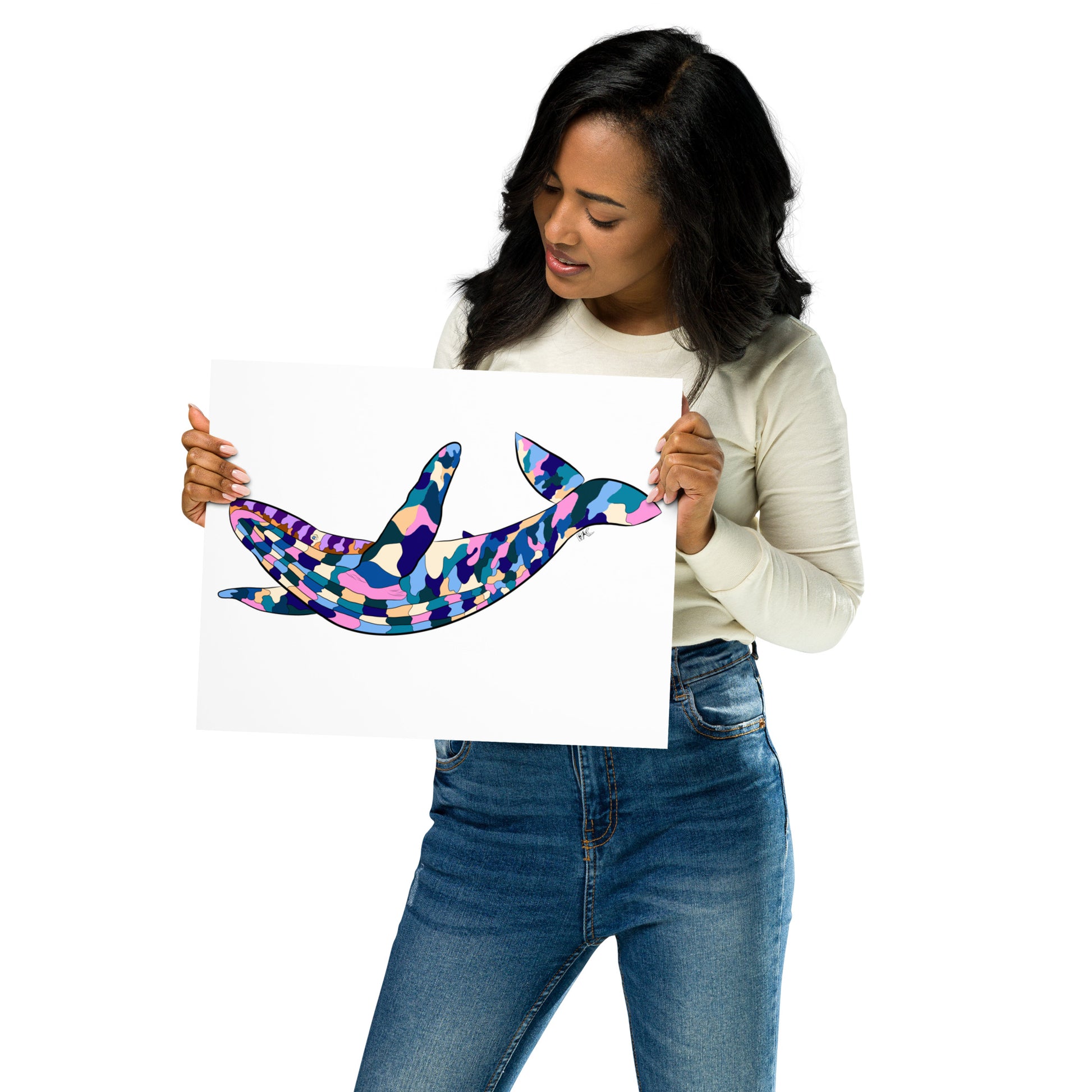 This poster is sure to add life and creativity to any area you display it in! This whale was inspired by the absolute beauty the ocean has and it's many shades and colors. Some of the colors are taken from animals themselves, and many are ocean and ocean sunset colors.